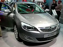 Dévoilée en première mondial au Salon de Francfort, la nouvelle Opel Astra, quatrième du nom, est sans aucun doute l'automobile la plus attendue de l'exposition. En effet, avec près de 500 000 unités vendues par an, elle représente un tiers des ventes d'Opel en Europe[20]. C'est donc en toute logique que cette nouvelle Astra reprend les codes stylistique de l'Insignia, élue voiture de l'année 2009, tout particulièrement les thèmes de l'aile et de la virgule notamment visibles sur les feux de jour à LED[21].