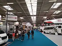 Tous les grands constructeurs sont présents sur les stands intérieurs pour la présentation et la vente de camping-cars et caravanes, mais un parking extérieur propose aux particuliers la vente de modèles d'occasion.