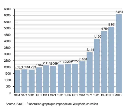 - ↑ (it) Popolazione residente e bilancio demografico sur le site de l'ISTAT.