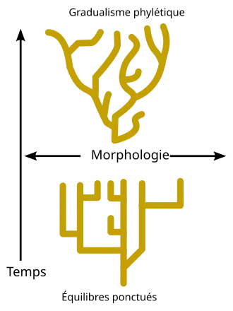 - ↑ « Les équilibres ponctués ne sont pas une théorie de saltation ou de vraie discontinuité, mais ils disent seulement que la succession des spéciations conventionnelles au cours des temps géologiques aboutira à un motif d’équilibres ponctués ». Cf Stephen J. Gould,, « Dix-huit points au sujet des équilibres ponctués », dans Jean Chaline, Modalités, rythmes et mécanismes de l’évolution biologique : Gradualisme phylétique ou équilibres ponctués ? (Dijon, 10-14 mai 1982), Éd. du CNRS, , p. 39