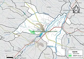 L’inventaire des zones naturelles d'intérêt écologique, faunistique et floristique (ZNIEFF) a pour objectif de réaliser une couverture des zones les plus intéressantes sur le plan écologique, essentiellement dans la perspective d’améliorer la connaissance du patrimoine naturel national et de fournir aux différents décideurs un outil d’aide à la prise en compte de l’environnement dans l’aménagement du territoire. Une ZNIEFF de type 1[Note 1] est recensée sur la commune[16] : les « bois de Campan et du château du Pradel » (31 ha)[17].