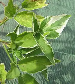 Les feuilles caduques, opposées et imparipennées sont composées de 5 à 7 folioles, à l'extrémité pointue et au bord denté, un peu plus velues sur les nervures[8]. Les feuilles ont une odeur déplaisante lorsqu'on les froisse.