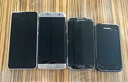 La série Samsung Galaxy S Edge reprend les caractéristiques des Samsung Galaxy S, mais avec un écran incurvé sur les bords droit et gauche de l'appareil afin d'afficher l'heure, les notifications et d'autres informations. L'appellation est abandonnée après que Samsung a décidé d'équiper tous les nouveaux mobiles de la série Galaxy S principale de ce type d'écran.