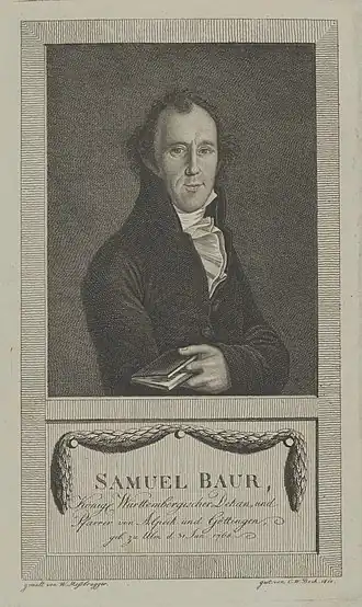 Samuel Baur, né le à Ulm et mort le à Göttingen, est un pasteur luthérien et un écrivain allemand.