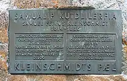 Samuel Kleinschmidt est enterré à Nuuk. C'est dans cette ville, qui est la capitale du Groenland (en danois: Godthaab ), qu'une plaque commémorative a été posée et qui lui est dédiée avec l'inscription suivante en langues danoise et groenlandaise : Samualip Kutdlilerfia, Samuel Petrus Kleinschmidt 1814 • 1886 Pour ses services à la culture du Groenland et de la société du pays. Il a reçu en 1882, le Dannebrog et a été honoré comme docteur honoris causa de l' Université de Humboldt.