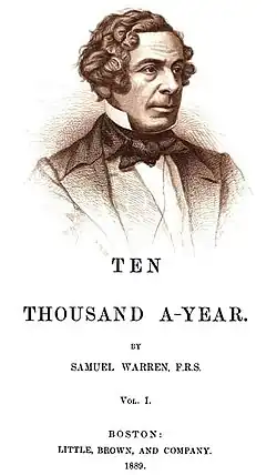 - Ten Thousand a-Year, roman paru en feuilleton, également dans le magazine Blackwood's Magazine jusqu'en 1839 ; puis dans une édition intégrale et définitive en 3 vol., revue et corrigée par l'auteur en 1841.