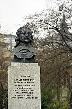 Les difficultés rencontrées dans l'entreprise d'une colonisation de l'Amérique du Nord sont nombreuses[2], et ce n'est qu'à partir des étés et , dans les dix-huit derniers mois de sa vie, que Champlain voit son rêve de colonisation se concrétiser, avec l'arrivée et l'établissement de quelques dizaines de familles de colons[note 1]. Son acharnement à vouloir implanter une colonie française en Amérique du Nord lui vaut, depuis le milieu du XIXesiècle, le surnom de «Père de la Nouvelle-France».