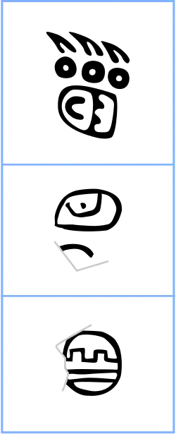 Le plus important est un cylindre en céramique de la taille d'un poing, dont on pense qu'il était utilisé pour décorer des vêtements. Lorsqu'il est déroulé, le cylindre montre deux phylactères, émanant d'un oiseau ; ils représentent des logogrammes, supposés former l'expression « 3 Ajaw ». Le chiffre est exprimé dans le système mésoaméricain à base de traits et points ; « ajaw » est le nom d'un jour dans le calendrier sacré de 260 jours, et signifie aussi « roi », l'ensemble pouvant être le nom personnel d'un roi[13]. Les deux autres artefacts sont des fragments de la taille d'un ongle, provenant d'une plaque en roche verte, chacun portant un glyphe incisé. Les deux glyphes sont semblables à ceux, bien documentés, d'autres systèmes d'écriture mésoaméricains, tel le système d'écriture épi-olmèque ou isthmien[14].