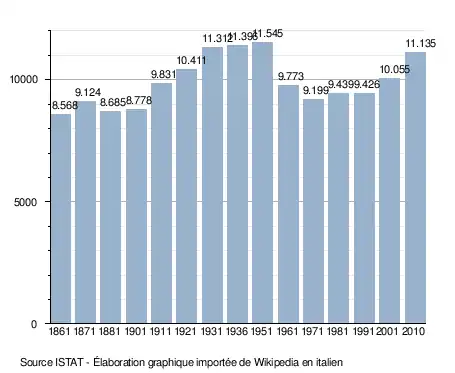 - ↑ (it) Popolazione residente e bilancio demografico sur le site de l'ISTAT.