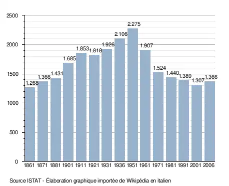 - ↑ (it) Popolazione residente e bilancio demografico sur le site de l'ISTAT.