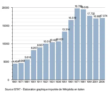 - ↑ (it) Popolazione residente e bilancio demografico sur le site de l'ISTAT.