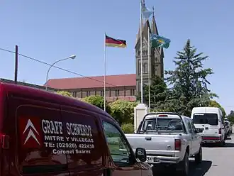 Drapeaux de l'Argentine, de la province de Buenos Aires, et de l'Allemagne à San José, Coronel Suárez.