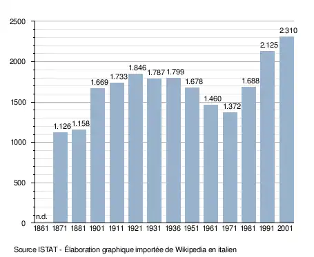 - ↑ (it) Popolazione residente e bilancio demografico sur le site de l'ISTAT.
