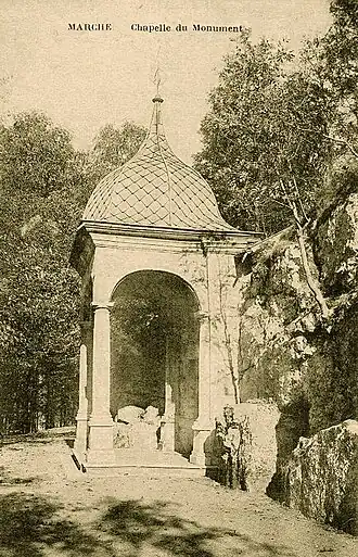 - ↑ L'essentiel du mobilier de la Chapelle du Monument est conservé au Famenne & Art Museum. Cf. Musée de la Famenne, Le site du Monument à Marche-en-Famenne. Un haut lieu de pèlerinage... oublié. Actes du Colloque, 12 avril 2008, Marche-en-Famenne, 2009, 94 p.