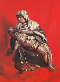 Au début du XIIIe siècle, Egelophe ramena de la croisade une statue de la Vierge. Selon certaines affirmations c'était une icône orientale. D'autres situent son origine en Lorraine. En 1475 on mentionne deux statues de la Vierge à Dusenbach, dont une portait une couronne. À la fin du XVe siècle on ne parle plus que de la statue vénérée actuellement au pèlerinage. C'est une statue en bois polychrome, haute de 53 centimètres. La Vierge est en position assise, sur ses genoux elle tient le corps inanimé du Christ descendu de la croix. Les pieds croisés ainsi que sa main droite tombent à terre. Son bras gauche est posé sur celui de la Vierge. L'œuvre est remarquable par l'élégance du travail, la belle expression du visage et la finition des mains de la Vierge. Elle est attribuée à un sculpteur de Ribeauvillé, mentionné dans les archives de la ville, en 1498, sous le nom de Laurentz, artiste sculpteur, et désigné dans les actes sous le titre d'honorable maître. On ne sait rien de précis sur la première image. Pour le moment on ne peut que se limiter à des suppositions.