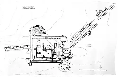 - Oskar Ziegenaus, Gioia de Luca: Das Asklepieion. Der südliche Temenosbezirk in hellenistischer und frührömischer Zeit. de Gruyter, Berlin 1968 (Altertümer von Pergamon Bd. XI 1).
