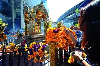 Très couru par les Thaïlandais pour toutes sortes de prières et d'offrandes, le sanctuaire est un lieu très vénéré et surtout constamment animé. Une troupe de danseurs y fait des représentations presque continuelles pour honorer l'Esprit du lieu[1]. Les adeptes trouvent sur place des vendeurs d'oiseaux à libérer pour gagner des mérites, des fleurs à offrir, des feuilles d'or pour coller sur la statue, etc.