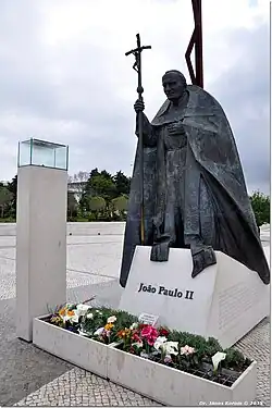 Ces deux places entourent la basilique de la Sainte Trinité, La place Jean-Paul II se situant à l’est (de la basilique), et la place Pie XII à l'ouest. La première place est décorée de deux statues : celle de Jean-Paul II et celle de Paul VI. Sur cette place se trouve également la Grande Croix[N 8] de 34 mètres, faite en acier corten. À proximité de ces places se trouve une autre statue, celle de Mgr José Alves Correia da Silva, évêque de Fátima[24].