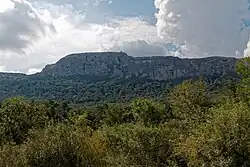 - ↑ Aujourd'hui, on voit encore les traces dans la falaise des anciennes constructions.