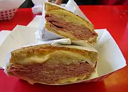 Le sandwich Reuben est un sandwich grillé fait de corned-beef, choucroute, d'emmental et de sauce russe (en). Plusieurs autres variantes existent.