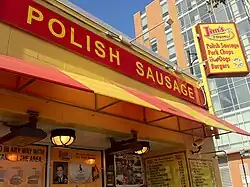 Chicago est la plus grande ville polonaise en dehors de Varsovie, la capitale de la Pologne. Les premiers immigrants polonais arrivèrent à Chicago à la fin du XIXe siècle (dans les années 1890) et au début du XXe siècle (entre 1915 et 1930) à la recherche de travaux industriels. Ils s'installèrent principalement dans les quartiers de Jackowo et Polish Village, dans le secteur d'Avondale, et apportèrent avec eux leurs culture et produits culinaires. Le sandwich polonais de Chicago trouve son origine au restaurant Jim's, situé au 1250 South Union Avenue sur Maxwell Street Market (marché de Maxwell Street) dans le secteur de Near West Side, et fut créé par Jimmy Stefanovic en 1939[2].