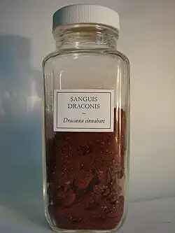 Le sang-dragon ou sang-de-dragon[1] est une substance résineuse rougeâtre produite par diverses espèces végétales, utilisée depuis l'Antiquité gréco-romaine comme matière médicale et comme substance colorante. Son usage se répand avec l'extension de la pharmacologie européenne, arabe et même chinoise, à une grande partie du monde, pendant presque deux millénaires.