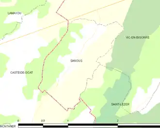 - ↑ Stephan Georg, « Distance entre Sanous et Vic-en-Bigorre », sur fr.distance.to (consulté le ).