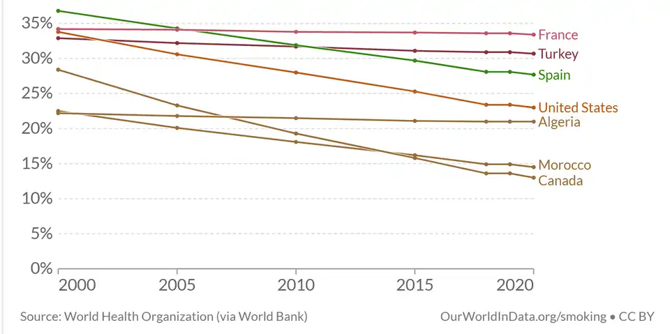 On estime qu'en 2020, environ 13,5% de la population marocaine fume. Cependant, près de 32% de la population marocaine est exposée au tabagisme passif et présente des risques de développer des problèmes de santé.