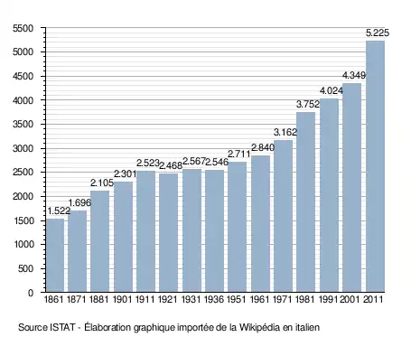 - ↑ (it) Popolazione residente e bilancio demografico sur le site de l'ISTAT.