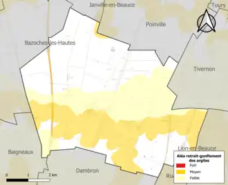 Le retrait-gonflement des sols argileux est susceptible d'engendrer des dommages importants aux bâtiments en cas d’alternance de périodes de sécheresse et de pluie. 27,8 % de la superficie communale est en aléa moyen ou fort (52,8 % au niveau départemental et 48,5 % au niveau national). Sur les 171 bâtiments dénombrés sur la commune en 2019, 101 sont en aléa moyen ou fort, soit 59 %, à comparer aux 70 % au niveau départemental et 54 % au niveau national. Une cartographie de l'exposition du territoire national au retrait gonflement des sols argileux est disponible sur le site du BRGM[15],[Carte 2].