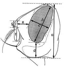 En général, le squelette céphalo-pharyngeal de la larve de stade III (fig. 3), qui présente les plus nombreux sclérites larvaires, est semblable à celui de la famille Calliphoridae. Il est formé d’une paire de mandibules (a), une pièce intermédiaire (i) et un grand squelette pharyngeal (j).