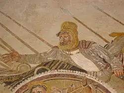 La cavalerie macédonienne (Compagnons ou prodromoi dit aussi sarissophores) peut également être équipée de sarisses, au lieu du xyston, ce qui lui assure un avantage dans la charge frontale, y compris contre des hoplites[8]. La lance est tenue par le milieu, et, comme le montrent le sarcophage d'Alexandre et la mosaïque d'Alexandre, le coup est porté soit en position haute soit en en position basse[8].