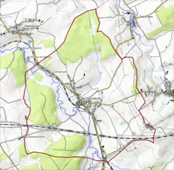 L'occupation des sols de la commune, telle qu'elle ressort de la base de données européenne d’occupation biophysique des sols Corine Land Cover (CLC), est marquée par l'importance des territoires agricoles (66,4 % en 2018), une proportion sensiblement équivalente à celle de 1990 (66,1 %). La répartition détaillée en 2018 est la suivante : prairies (55,2 %), forêts (27,9 %), terres arables (11,2 %), zones urbanisées (5,6 %), mines, décharges et chantiers (0,2 %)[15]. L'évolution de l’occupation des sols de la commune et de ses infrastructures peut être observée sur les différentes représentations cartographiques du territoire : la carte de Cassini (XVIIIe siècle), la carte d'état-major (1820-1866) et les cartes ou photos aériennes de l'IGN pour la période actuelle (1950 à aujourd'hui)[Carte 3].