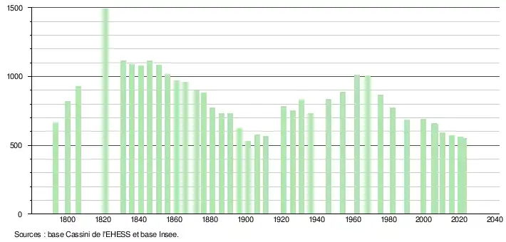 - ↑ Fiches Insee - Populations de référence de la commune pour les années 2006, 2007, 2008, 2009, 2010, 2011, 2012, 2013, 2014, 2015, 2016, 2017, 2018, 2019, 2020, 2021 et 2022.