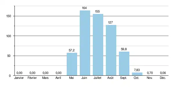 En considérant la seule période libre de glaces (de juin à septembre inclus), le débit mensuel minimal observé a été de 16,1 m3/s en , ce qui restait bien abondant. Des débits mensuels estivaux (juin-septembre) inférieurs à 15 m3/s sont très peu probables.