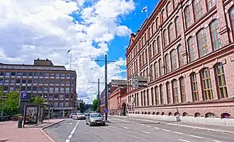 La rue est bordée, entre autres, par l'ancien bâtiment de tissage Plevna (1877), qui appartient à la zone de l'usine Finlayson, où le premier éclairage électrique des pays nordiques et de l'empire russe a été introduit en 1882.
