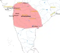 Son centre est le pays de langue télougou appelé « Andhra », soit les bassins des fleuves Godâvâri et Krishna[2]. L'empire s'est développé depuis les régions deltaïques de ces deux fleuves, et sa domination s'est progressivement étendue à travers le Deccan à l'actuel Mahârâshtra et le Mâlvâ, au nord du pays de langue tamoul, poussant peut-être jusqu'au Magadha pour sa frontière nord[2].