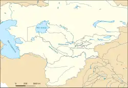 - Alexandrie Eschate : Alexandrie-sur-l'Iaxartes, symboliquement surnommée « l'Ultime » (Eschatè) car située au point le plus septentrional des conquêtes d'Alexandre, a été fondée en août 329 av. J.-C.[12] à des fins stratégiques[13]. « Le lieu paraissait permettre une grande extension de la ville et la fondation favorable pour une poursuite des Scythes, s'il le fallait, et pour la défense de la région contre les incursions des Barbares qui habitaient au-delà du fleuve[14]. » C'est à la fois une forteresse et une ville-comptoir située sur l'interface des limites du monde sous influence hellénistique. Elle est renommée Antioche de Scythia sous le règne des Séleucides[15]