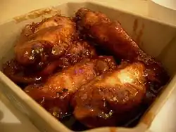La sauce à l'ail et au miel est une sauce aigre-douce aux saveurs de miel et d'ail, populaire au Canada. C'est l'une des nombreuses sauces qui permettent d'accompagner les ailes de poulet, les côtes[8] et d'autres aliments comme les boulettes de viande[9].