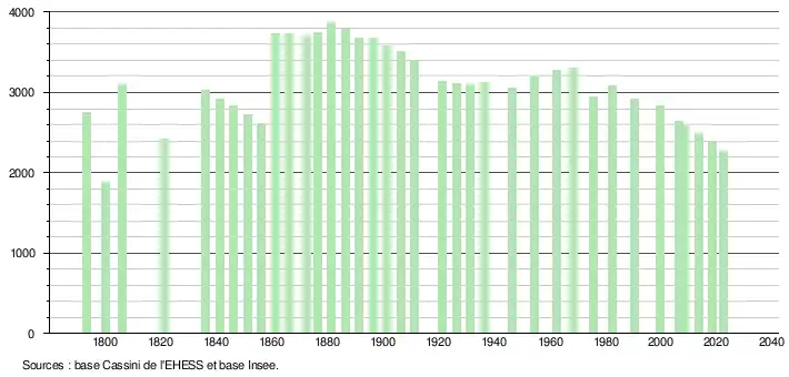 - ↑ Fiches Insee - Populations de référence de la commune pour les années 2006, 2007, 2008, 2009, 2010, 2011, 2012, 2013, 2014, 2015, 2016, 2017, 2018, 2019, 2020, 2021 et 2022.