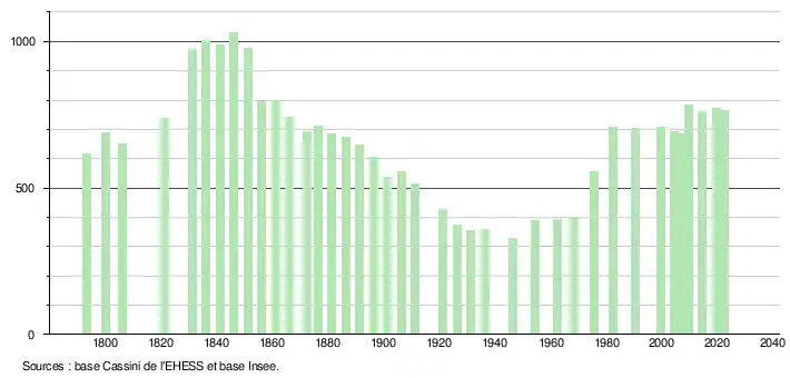 - ↑ Fiches Insee - Populations de référence de la commune pour les années 2006, 2007, 2008, 2009, 2010, 2011, 2012, 2013, 2014, 2015, 2016, 2017, 2018, 2019, 2020, 2021 et 2022.