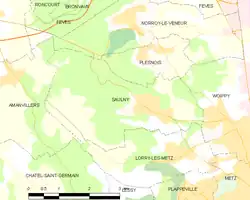 - ↑ « Orthodromie entre Saulny et Augny », sur fr.distance.to (consulté le ).