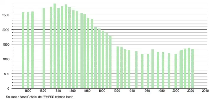 1 348 hab. (2022 en évolution de −1,75 % par rapport à 2016)