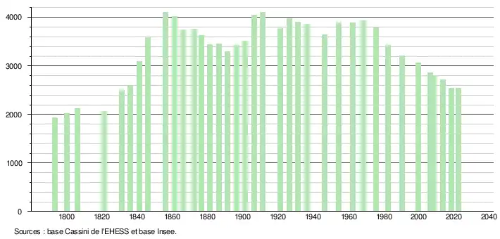 - ↑ Fiches Insee - Populations de référence de la commune pour les années 2006, 2007, 2008, 2009, 2010, 2011, 2012, 2013, 2014, 2015, 2016, 2017, 2018, 2019, 2020, 2021 et 2022.