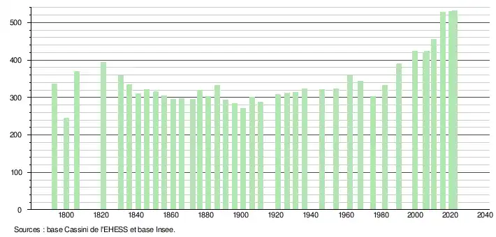 (Sources : Ldh/EHESS/Cassini jusqu'en 1999[16] puis Insee à partir de 2006[25].)