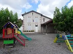 - Le château de Saint-Denis : Le château de Saint-Denis, dans sa forme actuelle, est une chartreuse édifiée au cours du XIXe siècle. Elle s'inspire très précisément d'une précédente chartreuse du XVIIIe siècle, ayant dû être abandonnée par ses occupants. Cette dernière se situait en effet à quelques dizaines de mètres du site actuel, mais à un niveau plus bas, ce qui la rendait vulnérable aux crues de la Garonne toute proche. Le bâtiment se présente sous la forme d’un corps de logis central à un niveau couvert par une toiture à la Mansart, percée de mansardes, encadré par deux pavillons à deux niveaux. Les communs, qui comprennent une orangerie, sont organisés sur une cour en U ouverte à l’ouest. Ils sont antérieurs à la reconstruction du château. Le parc se développe principalement au sud-ouest du château, mais il comprend une pelouse dégagée au nord et il s’étire à l’ouest vers le village sous forme d’un triangle. C’est dans cet angle nord-ouest, en bord de route que se trouve l’entrée principale, soulignée par une demi-lune de bornes en pierre qui encadre l’extrémité d’une allée courbe[32]. Le domaine de Saint Denis appartient à la famille de Bastard, originaire du comté Nantais, qui s'établit dès le XVe siècle en Gascogne, près de Fleurance. La Ségneurie Saint Denis fut acquise par Dominique de Bastard en 1667[33].