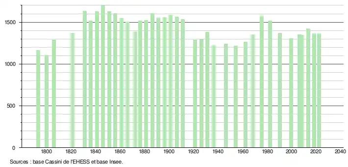 - ↑ Fiches Insee - Populations de référence de la commune pour les années 2006, 2007, 2008, 2009, 2010, 2011, 2012, 2013, 2014, 2015, 2016, 2017, 2018, 2019, 2020, 2021 et 2022.