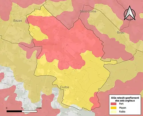 Le retrait-gonflement des sols argileux est susceptible d'engendrer des dommages importants aux bâtiments en cas d’alternance de périodes de sécheresse et de pluie. 99,4 % de la superficie communale est en aléa moyen ou fort (67,4 % au niveau départemental et 48,5 % au niveau national). Sur les 173 bâtiments dénombrés sur la commune en 2019, 170 sont en aléa moyen ou fort, soit 98 %, à comparer aux 84 % au niveau départemental et 54 % au niveau national. Une cartographie de l'exposition du territoire national au retrait gonflement des sols argileux est disponible sur le site du BRGM[21],[Carte 2].