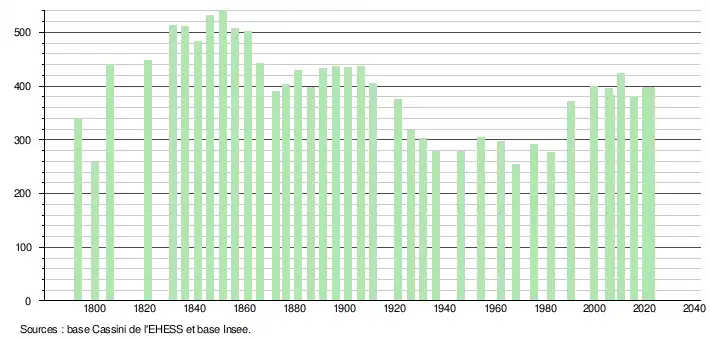 - ↑ Population municipale de référence en vigueur au 1er janvier 2025, millésimée 2022, définie dans les limites territoriales en vigueur au 1er janvier 2024, date de référence statistique : 1er janvier 2022.