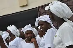 Le Kaba' est la grande robe que revêtent les femmes lors de la cérémonie du Ngondo[5].